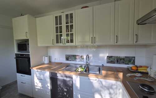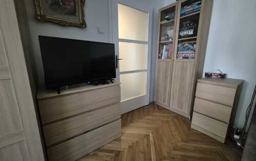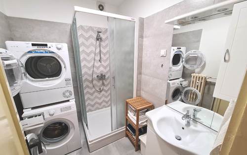 The apartment is situated on the 3rd floor in a building without an elevator. It consists of a hallway, living room with access to the balcony (orientation west) pull out corner sofa and tv, double bedroom, kitchen with all cutlery and crockery, toaster, kettle, oven and cooker, bathroom with shower, washing machine and dryer, separate toilet. Internet and AC are installed in the apartment. Public parking around the building is free.