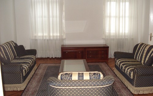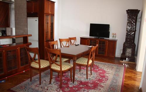 This apartment is placed between main train station and the main square on 2nd floor in the 4 storey building without lift. The property has approx 110 sq m of living space. Central area is modern kitchen and dining room. On the right side of the entrance is large double bedroom with access to the modern furnished living room. These two rooms look on to the park that runs between the train station and the main square. On the left side of the entrance is separated toilet and the hallway to the 2nd bedroom and bathroom with the bath and shower. There is no parking with the property.