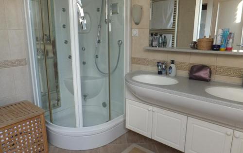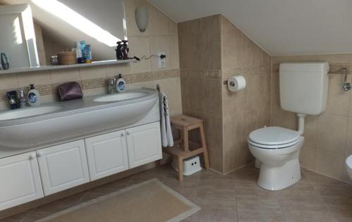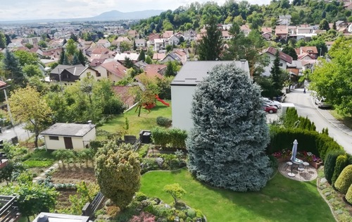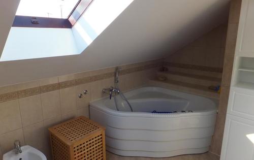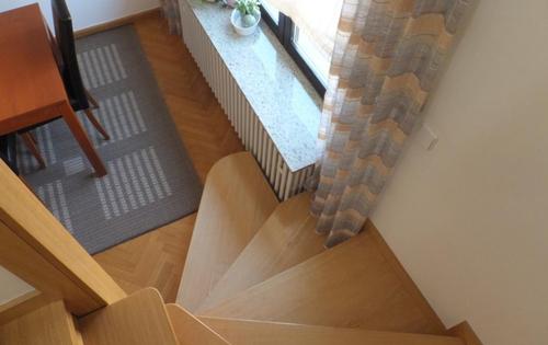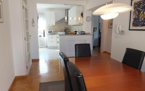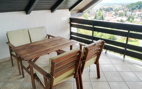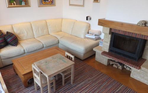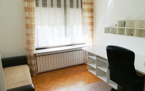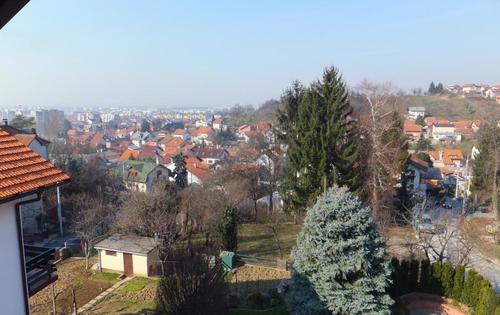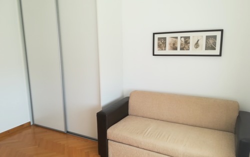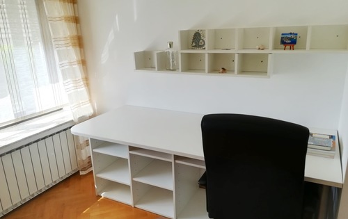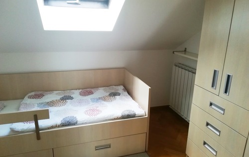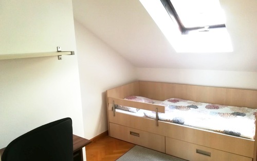 This property is placed in house with 2 apartments in total. It is placed on 2nd and 3rd floor and has approx 120 Sq m in total living space. The first level holds entry hall, open plan kitchen/dining with fire place, and study room. Kitchen is fully equipped and has small storage. Top floor consists of master bedroom, children’s room, large bathroom with shower and bath tub, and good size covered terrace with great view. The property is fully furnished and has 2 parking spaces reserved in the courtyard. Small but very nice garden is in common use.