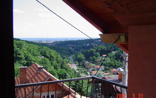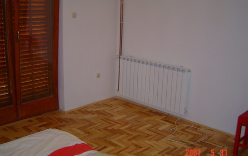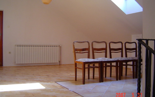 This 2 floor apartment is located 10 minutes from the center of Zagreb by car. In ground floor has 2 double bedrooms, lounge with kitchen and dining area and bathroom. From dining area you are exiting to the balcony witch is going along the apartment and finishing with terrace space. On first floor apartment has playing/lounge room with exit to the balcony, bathroom and 2 single bedrooms. With apartment comes one garage space and Garden. Apartment is in peaceful area surrounded with grass and forest.