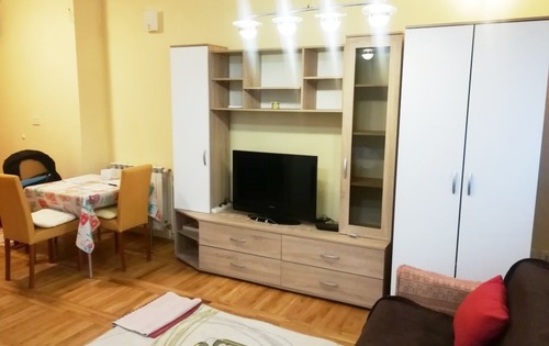 This property is situated on the ground floor in a house with 5 apartments. The apartment is fully furnished, it has AC, central gas heating and overlooks the park. It consists of one bedroom with single bed and pull-out sofa, kitchen and bathroom with shower. It is located in an excellent position nearby the main Zagreb bus station, close to business zone in Radnicka street, Vukovarska and Drziceva streets, very well connected to city centre.