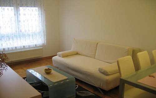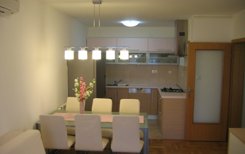 This apartment is placed in 5th floor in 8-storey building and has approx 50 sq m of living space. It has entry hall, one double bedroom, open plan fully equipped kitchen, bathroom with washing machine and dryer, and balcony. It is not a big apartment, but everything there is in it is top quality (Wollbett bed and mattress, Eduro wardrobes, and Miele appliances, 3D package from BNET, which includes telephone (national landline calls are practically for free), internet (unlimited, wireless, flat-rate) and cable TV (100 channels). It has air-condition, central gas heating and one parking space is reserved.