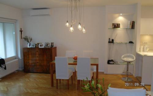 This great property is placed in Ribnjak street and has approx 85 sq m of living space. It is very modern and quality equipped apartment and holds open plan kitchen with balcony on street side, one double bedroom with walk-in wardrobe and balcony on other side where is very quiet and peaceful. It has modern bathroom with washing/dryer machine and one guest toilet. The property has one parking space reserved in the underground garage.