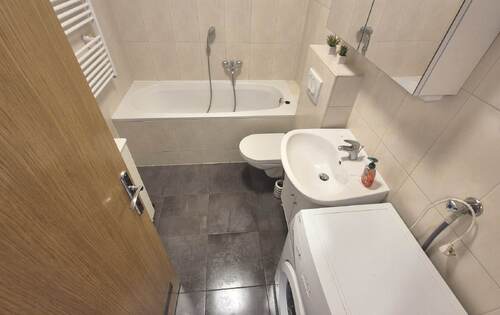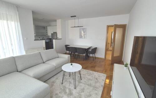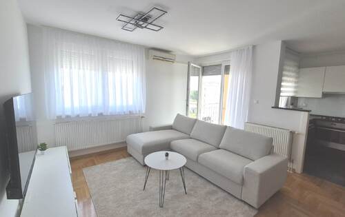 The apartment is placed on the 8th floor, it holds 51 sq m and consists of 1 double bedroom, bathroom, living room with balcony and kitchen. This property is equipped with new furniture, gas heating, AC, dish washer and washing machine. The fiber optic cable for the internet is in the building. One reserved garage parking space. The apartment is located in Sigecica between Radnicka cesta and Slavonska avenija, near Zagreb Tower and business zone.