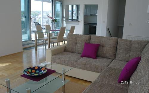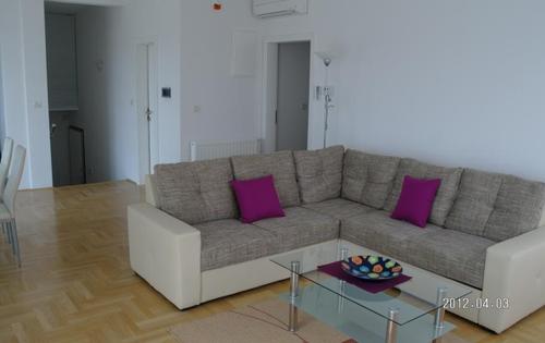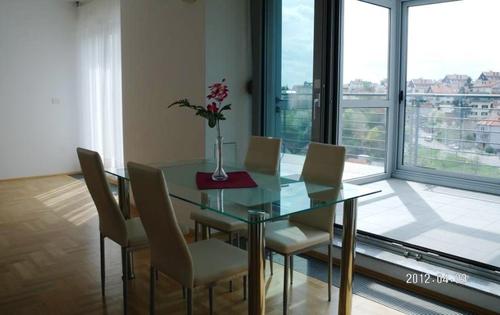 This property is placed on top floor of 4-storey villa whit 4 apartments in total, one apartment on each floor. It is newer building; build in high standard of material and with secured 2 parking spaces (one covered) for each apartment and with large garden in common. It has size of approx 86 sq m of living space, plus 18 sq m of winter terrace, and 22 sq m of terraces with great view. It holds open plan fully fitted kitchen, 2 double bedrooms, bathroom, guest toilet, and storage. It is furnished apartment with enough build in wardrobe. Extra storage space is reserved in the ground level. It is great located property, not so far from Maksimirska street, also very near international schools.