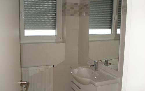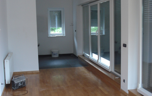 This new 3-bed apartment of approx. 130 sq m is located in Mlinovi. The apartment consists of sleeping area separate from the living area. Upon entering the apartment you come into a very large open plan Lounge, dining room and kitchen, with exit to the 90sq m terrace. From the lounge, there are stairs which lead to the sleeping area. A small hallway leads to the guest toilet, main bathroom and 2 of the bedrooms. One of the bedrooms has a small balcony. The third bedroom is of a good size and has an en-suite bathroom with shower, toilet and sink. This bedroom also has a good size terrace East and South facing, with great view. The apartment has 1 parking space and a garage space. The basement has storage of approx. 25sq metres. The apartment is set in a quiet area.