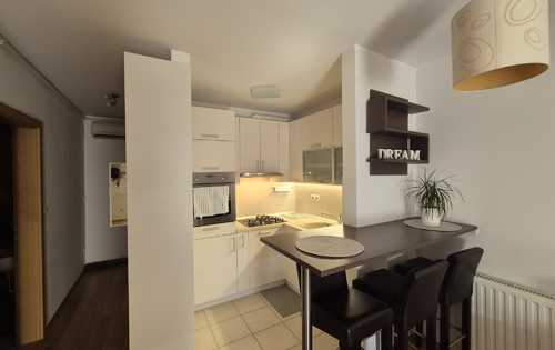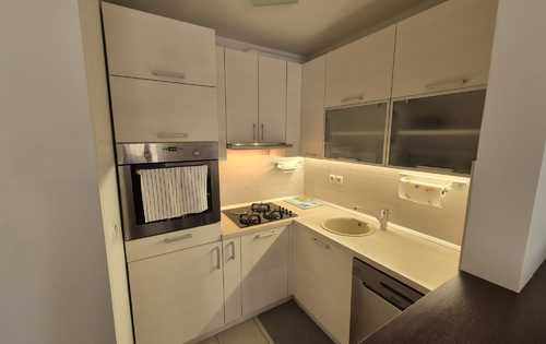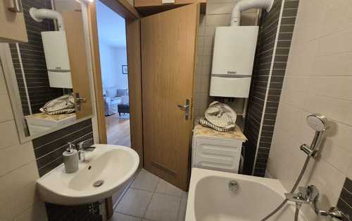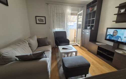 This nice apartment is placed on the 1th floor in a urban villa and has approx. 43 sq m of living area. It is furnished and consists of open living room with kitchen and dining space, bathroom with washing machine, a balcony that is completely covered with an awning. It has fully functioned kitchen with dishwasher, living room with tv and air conditioner. The apartment has all day light because it is west oriented. The property has a parking space right below the balcony. The building has 5 apartments. Each apartment has a separate storage room that is enclosed by an anti-theft door. The apartment is located near the bus station - 50 meters, tram is a little further (15 minutes’ walk). Nearby there is a school, a kindergarten, a church, also shops like Kaufland, Lidl, Konzum. It is in a nice street, not far away from Arena Zagreb and Arena Centar.