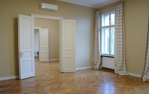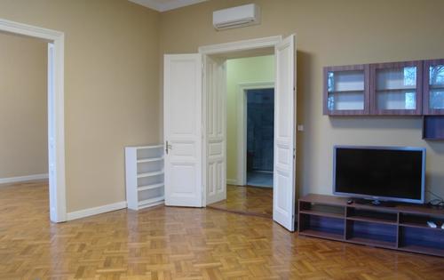 This renovated 5 *-room apartment of approx. 200 sq m, is located on the second floor, in well maintained resedential building. The apartment consists of an entrance hall with access to the balcony, 4 connected rooms overlooking the Botanical Garden, of which three have entrance from the hallway and the fourth has acces from other three rooms, this room has a private bathroom with bathtub. Another smaller room with additional space, facing the courtyard, furnished kitchen with access to balcony, overlooking the courtyard, second bathroom with shower, and a separate toilet. Each room has air conditioning, underfloor heating in the bathrooms, gas central heating, intercom, alarm and safe. Orientation of the apartment north-south. Parking is available in the public garage nearby the Importanne Center or outdoor parking with a privileged parking ticket. In the immediate vicinity there is tram station, main railway station, King Tomislav Square, Esplanade Hotel, Theater, Restaurants, 10 minutes walking distance to the main city square.