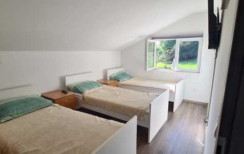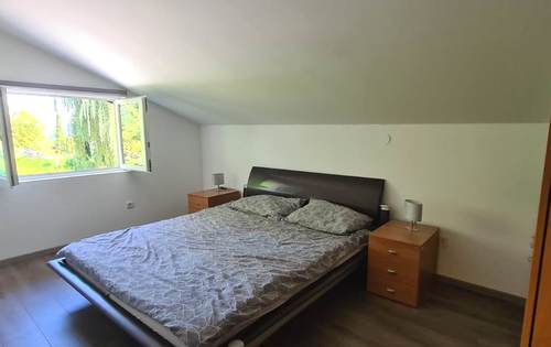 Detached holiday home only 30 minutes drive from Zagreb. The access road leads you to a fenced plot of 4500 sq m with a landscaped yard, canopy, barbecue area, space for socializing or relaxing. The ground floor of the house consists of: dining room, living room, kitchen and bathroom, bedroom. Floor: three bedrooms, living room and bathroom. Fully furnished and equipped, air conditioning, electric and wood heating, blootuth speakers, cooking equipment - grill - boiler - refrigerators - dishwasher. We offer you this oasis of peace for daily (minimum 2 nights) or weekly rent!