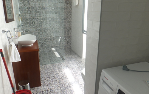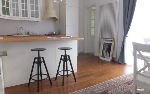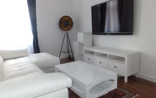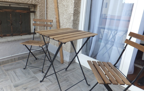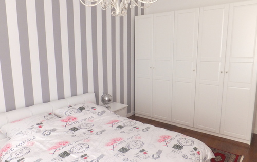 This property is situated on the 2nd floor and has approx 64 sq m of living space, plus good size balcony of 7 sq m. The property is renovated in very high standard of material and its very well equipped and designed apartment. It holds kitchen with dining room and access into the balcony, one double bedroom, living room and bathroom. The property is fully equipped and has one parking space reserved in the yard.