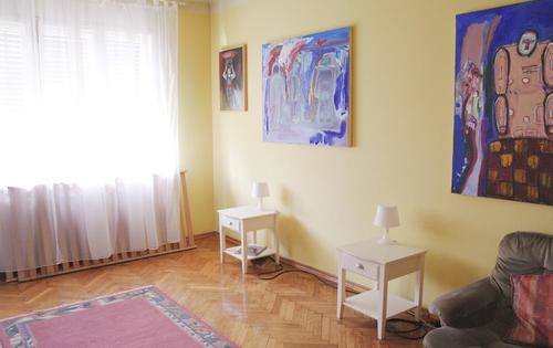 This apartment is located in Tome and Petra Erdody street, an area that is known for its proximity to the main bus and train station, shops, trams, restaurants, park of King Petar Kresimir IV, Branimir Market.. This apartment is placed on the 4th floor with elevator, in a older building. The apartment consists of two large bedrooms, lounge area, kitchen with dining area, bathroom, toilet, hallway and storage room. The apartment is very spacious and is rented furnished with a great room layout.
