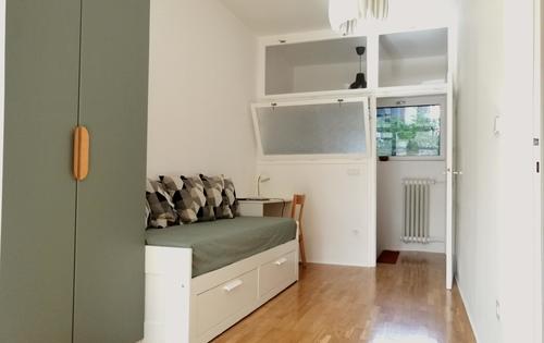 The apartment is situated on the 2nd floor in a well maintained building with two elevators. It consists of an entry hall, kitchen with dining, bathroom, study room, bedroom and living room. The apartment is fully equipped, it has AC in bedroom and living room, floor heating in the bathroom, built in washing dryer, dish washer, ceramic Villeroy sinks, Grohe pneumatic toilet flush, new electric with dimmer touch switches and rocker switches. This property is placed in an excellent location in city center (Laginjina street) close to all city perks.