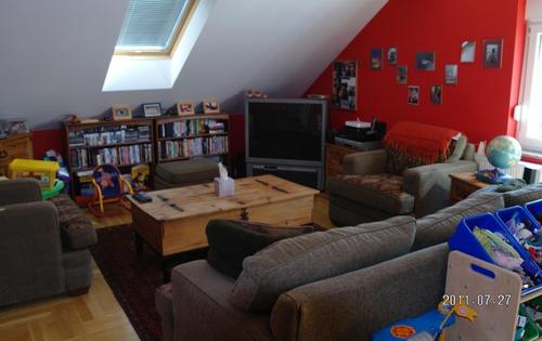 This property is placed in a very quiet street, close to centre. It has approx. 300 sq m of of living space, 2 garages and a nice garden with large terrace. Ground floor holds one bedroom with bathroom, suitable as guest apartment; From the ground floor the stairs lead on the first floor which holds a living room, kitchen, dining room and toilet. Second floor holds 2 double bedrooms, bathroom, walk-in wardrobe and laundry. Third floor has another living room, 2 bedrooms and bathroom. The property can be rented out furnished and unfurnished. Price for unfurnished house is 3000 EUR.