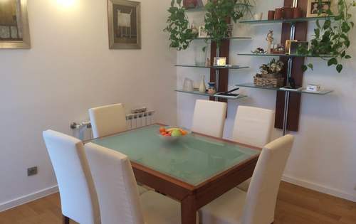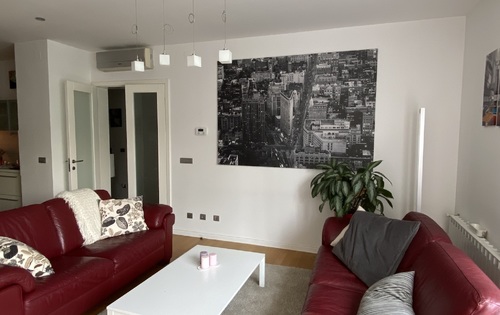 Apartment in a new building (urban villa) of 86 sq m, with a terrace of 26,82 sq m, garden (175 sq m) and two garage spaces, total area holds 121 sq m. The apartment consists of 2 bedrooms, living room with dining area and kitchen (open space) with access to the terrace, spacious bathroom with Jacuzzi, and guest toilet. The apartment is equipped with quality furniture and kitchen appliances, comfortable to live in, has lots of daylight, oriented to the East with a view of the greenery. The apartment has a garage of 14 sq m with two spaces and parking in front. During summer, the possibility of using a prefabricated pool in the garden. It is located in a quiet area above the city center, near the Rudjer Boskovic Institute, the German and French International Schools.