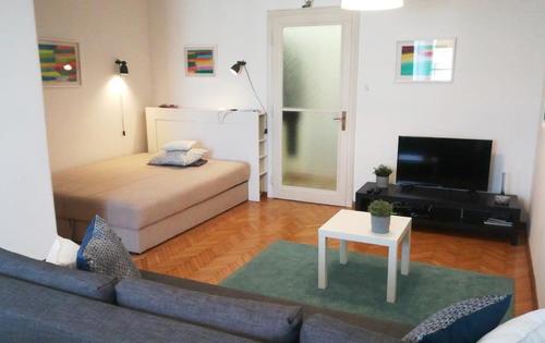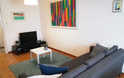 This nice 1-bedroom apartment of 42 sq m is placed on the 4th floor in a building with an elevator. The apartment consists of a living room with a sofa and sleeping area with a French bed, bathroom, separate kitchen, storage room and a large balcony with a beautiful view of Zagreb Cathedral. The building in which the apartment is situated is a protected cultural property and one of the best achievements of Zagreb's 20th century architecture. This property is located in Ilica street, only one tram stop away from Ban Jelacic square, Croatian National Theater and British square.