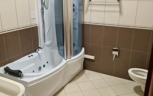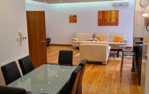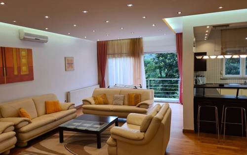 Newly built 3-bedroom apartment of 135 sq m with big terrace, shared garden and swimming pool. Fully furnished, contains of hallway, guest toilet, separate bathroom, two double bedrooms, one single bedroom, open plan kitchen with living room and dining room. Secured parking in front of the building.