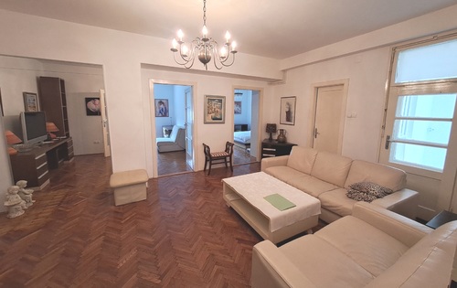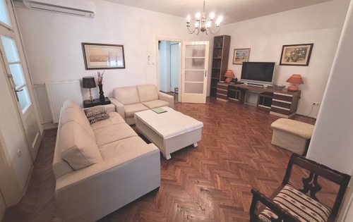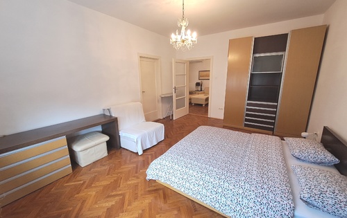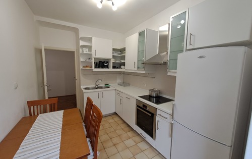 This property is placed on the 2nd floor of a 4-storey building and has approx 95 sq m of living space. The apartment consists of an entry hall, kitchen with dining room and balcony, living room with closed loggia, 2 good size bedrooms, one single bedroom, bathroom, storage and guest toilet. It is equipped with washing machine, dish washer, AC and Internet. The apartment is located near Zelengaj Park, above British square and street Ilica, a 15 minute walk to the Main square Ban Jelacic.