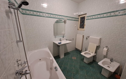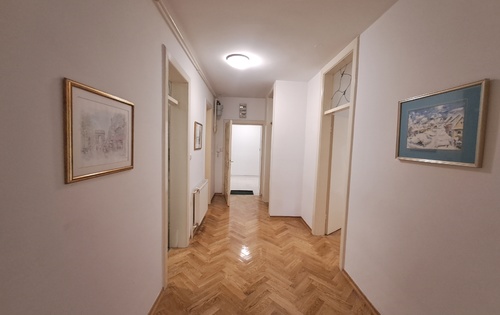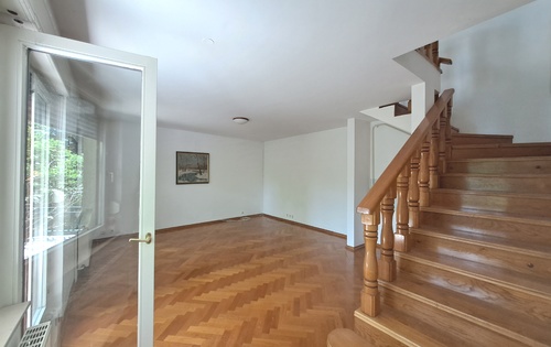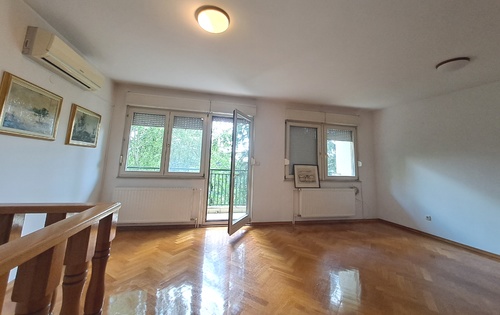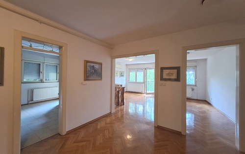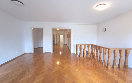 This property is placed on -3rd floor and has approx 250 sq m of living space. It has two floors. First level holds 1 double bedroom, 2 single bedrooms, living room with terrace, storage, kitchen and two bathrooms. Stairs from living room lead downstairs into the large room which can be suitable as master bedroom. There is also bathroom with shower and access into the small but nice garden. The property is equipped with kitchen, central gas heating, air-condition and a garage.