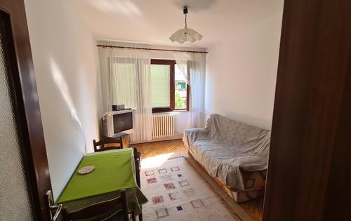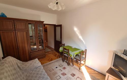 Studio of 27 sq m in Srednjaci on the second floor. It consists of an entrance hall with closet, bathroom with tub, kitchen (stove - gas bottle, electric oven), Room approx. 12 sq m (sofa bed, table, wardrobe). The apartment has a view of the park, east side, wooden windows, parquet and tiles, heating. This property is located near Jarun, Tresnjevka.