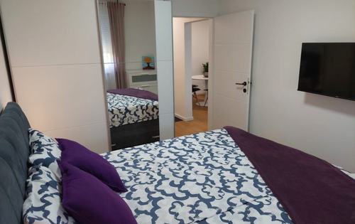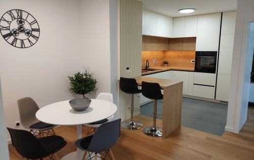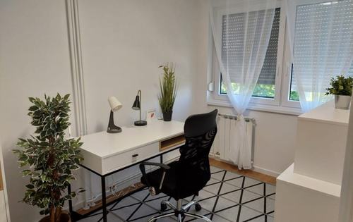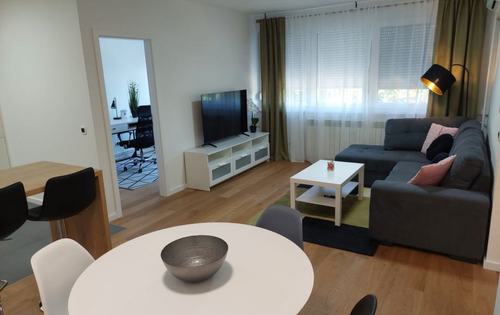 The apartment holds 51 sq m, it is situated on the 3rd floor in a residential building without an elevator. This property is completely renovated and modernly furnished and fully equipped with new appliances. It consists of a hallway, a living room with kitchen and dining room, one double bedroom, study room, bathroom and a storage room. The apartment is located in Vrbani 5 minutes from the tram and bus station, lake Jarun is a 10-minute walk away. Public parking in the neighbourhood is free.