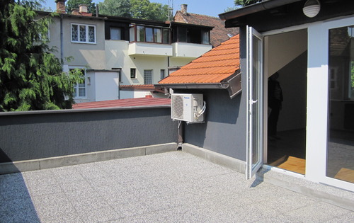 3-storey office space (semi-detached house) in a courtyard on the British square (Britanski trg) just 10 minutes walk from the main square. The office comprises a good size hallway, two large rooms, kitchen and bathroom on the ground floor, one of the rooms has access to a terrace and garden; Hallway, three rooms and balcony on the first floor; large open plan, bathroom and huge terrace on the top floor. The office is unfurnished. It is equipped with air-conditioner, intercom, built-in shelves and connection to internet on each floor. Ideal for law's office, architect studio or foreign representations. The property does not have a car access, but there is a public parking zone in the street, as well as walking distance to tram stop.