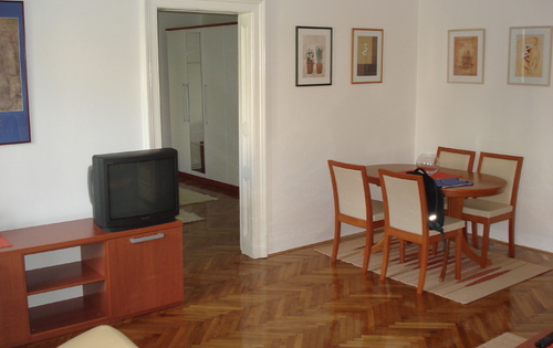 The 1-bed apartment is placed in Gunduliceva Street on 2nd floor in 4-storey building with lift and has approx 75 sq m of living space. This property consists of one double bedroom, living room with dining area, bathroom with shower, kitchen and one small room next to kitchen. The apartment has all kitchen appliances, TV, AC, dishes and bed sheets. Possibility for parking in the yard