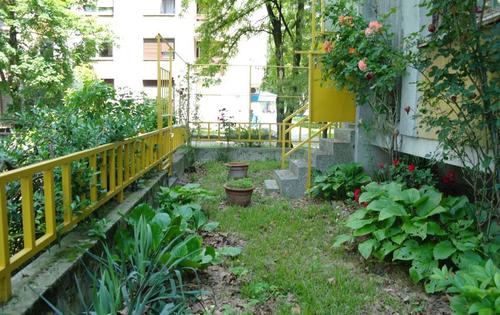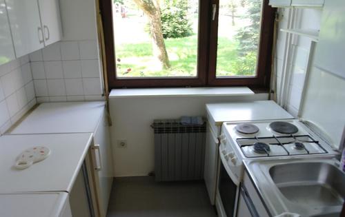 This property is placed on the ground floor and consists of a hallway, bathroom, storage room. From the dining area, you enter to two rooms, on the left there is a smaller room, and on the right side one of 20 sq m, with an exit to a terrace and garden. The apartment doesn't have air conditioning and is facing the park. Public parking is free of charge. The apartment can be rented out as office space and it is unfurnished.