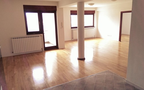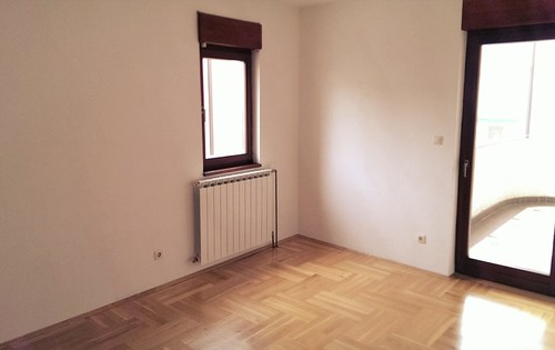 The apartment is placed on the first floor in a 3-storey building, and has approx.120 sq m of living space. It holds entry hall, large living room, kitchen with dining, two bedrooms, one bathroom and separate toilets. The property is unfurnished. It is located in Kustosijanska street on Crnomerec and it is perfect for families with children. Apartment has a parking space.