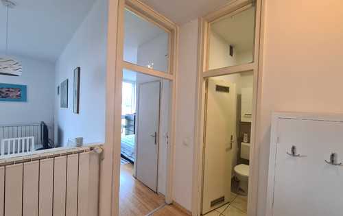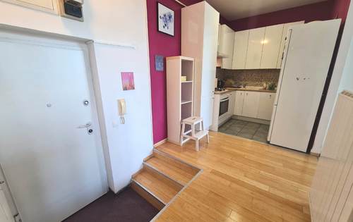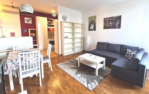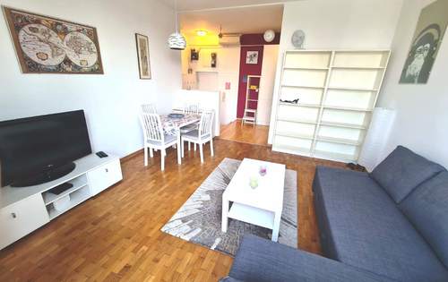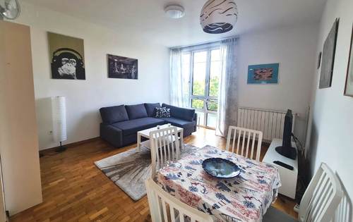 Apartment of 43 sq m overlooking the park, fully furnished and equipped, with living room, kitchen, bedroom, pantry and bathroom. This property is placed on the 4th floor in a building with two elevators. The apartment is fully equipped, it has AC, washing machine, dish washer, TV and Internet. It is situated in an excellent location in city center (Laginjina street) close to all city perks.