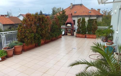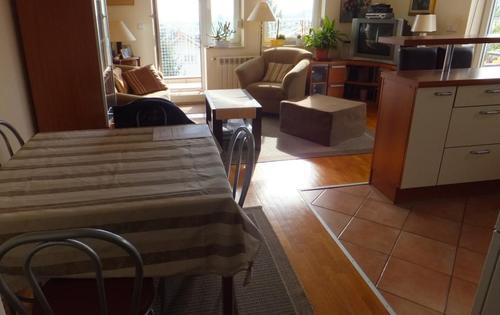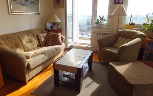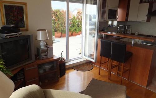 This property is placed on top floor (2nd) in 3-storey building and has approx 44 sq m of living space plus large terrace of approx 50 sq m. It holds open plan kitchen, one single bedroom, bathroom and terrace. Great location in very peaceful street, great view from the terrace, pull out sofa in living room, fully furnished and equipped.