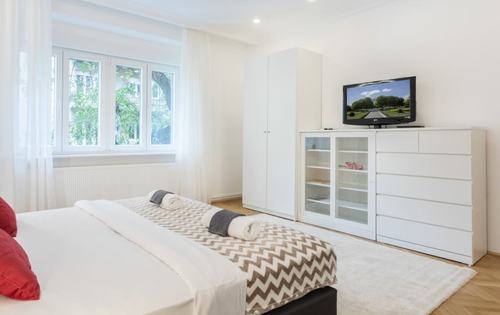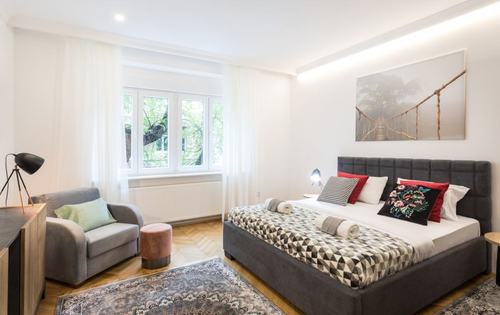 This spacious property is located on 1st floor in the building with an elevator, and it has 115 sq m of total living area. The apartment consists of two bedrooms, kitchen with all appliances, closed loggia, living room and two bathrooms with shower cabins and toilets. The apartment is fully refurbished, air-conditioned. It is located in the very center of the city, in Vojnoviceva Street, a few minutes walk to the Ban Jelacic Square.