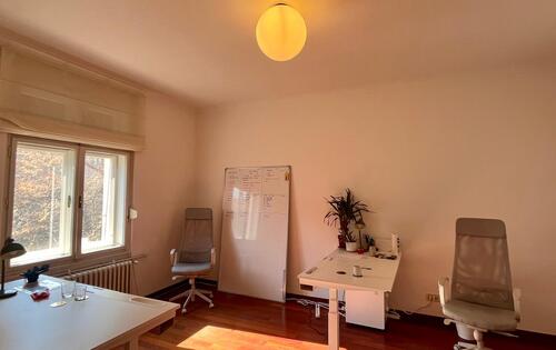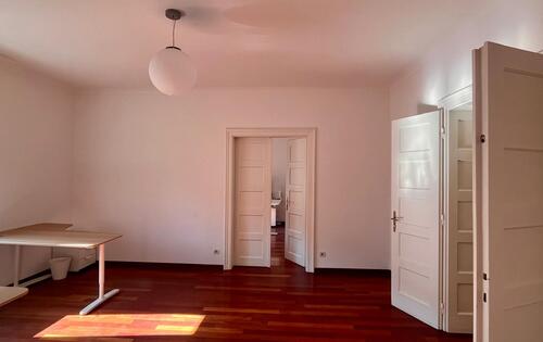 Nice, spacious office of 112 sq m on the second floor in a well maintained building in the city center. It consists of an entrance hall, 3 connected large rooms, kitchen, pantry, bathroom, guest toilet and balcony. The office is rented unfurnished, it is very bright (orientation south-east), it has air conditioning and central gas heating. The space is suitable for quiet business, law office, bookkeeping. It is situated in an excellent location in city center (Trg Zrtava Fasizma), 10 minutes walk from Ban Jelacic Square.