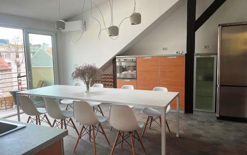 This beautiful apartment is placed on 3rd floor in 3-storey building and has approx 120 sq m of living space. It has living room, fully equipped Scavolini kitchen with dining room, double bedroom, single bedroom/office, good size walk-in wardrobe, bathroom with tub and shower, guest toilet and balcony. Each room has a nice view on the Tomislav square. It is very modern and fully equipped property.