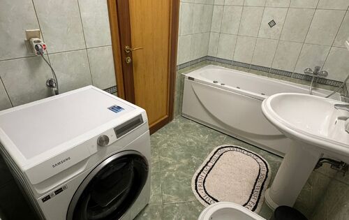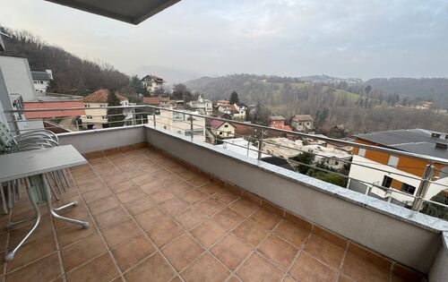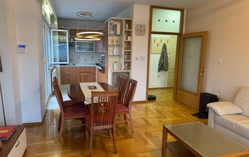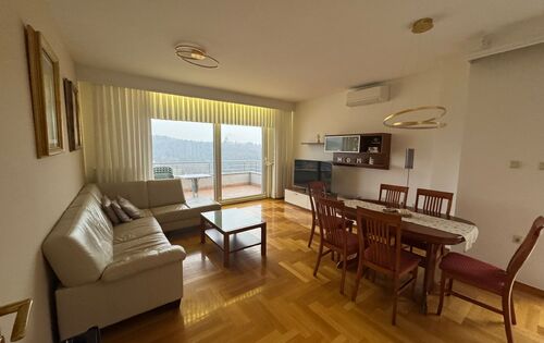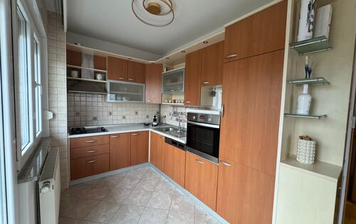 The apartment consists of lounge with kitchen and exit to the terraces with a beautiful view of the city, a master bedroom with exit to terrace, 2 single bedrooms, bathroom with bathtub and bathroom with shower, storage and loggia. Apartment is fully equipped. It has a garage for 2 cars and parking space in front of the building. This property is located 10 minutes from the city center in Nemetova street.
