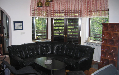 This 2-bed apartment is placed on the ground floor in a house with three levels. It consists of 2 double bedrooms, fully equipped kitchen, bathroom and good size balcony with great view. The house is placed in a very peaceful location. The apartment is equipped with central gas heating, telephone, satellite TV, and has 2 parking spaces in a secured yard at the front of the property. The utility bills are included in the rent price, except phone and internet.