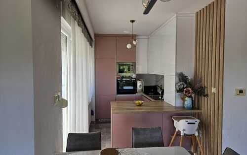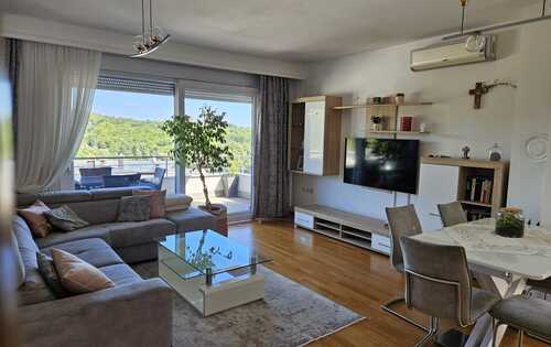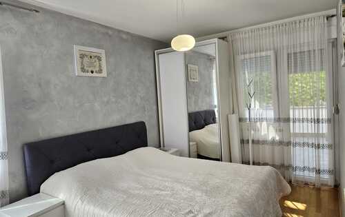 Three-bedroom apartment, with great BBQ area, garage for 2 cars and parking space. Open plan kitchen with living room that has access to the large terrace with a beautiful view of the city. Extra storage area, one bathroom, toilet and hallway with wardrobes. The apartment is situated in a quiet location on Nemetova Street, 10 minutes from city center.