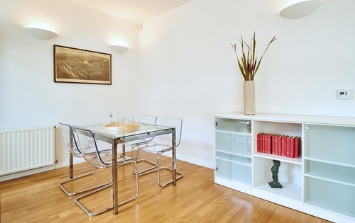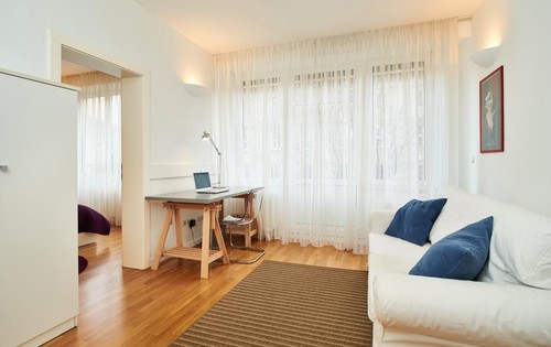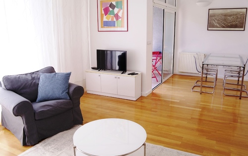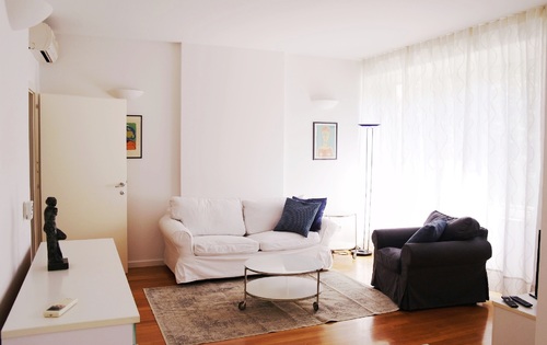 Apartment is situated on the second floor in a residential building with elevator/ lift. The apartment exists of a living room with open plan dining room, balcony, kitchen, 2-double bedrooms, study room, bathroom with toilet and separate toilet. AC, fully furnished. Secured parking space in the courtyard of the building.