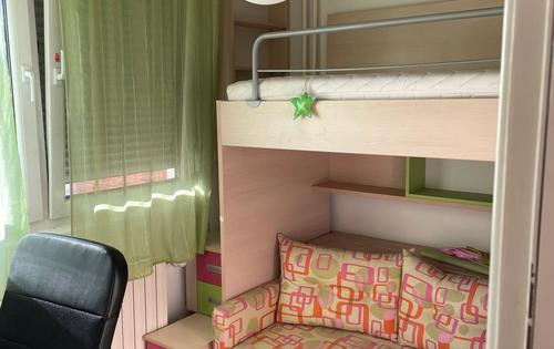 The apartment is situated on the 2nd floor in a building with a total of 4 floors, it consists of one double bedroom, two single bedrooms, open plan kitchen with living room and loggia, bathroom with shower and separated toilet. This property is located in a very good neighboughood Vrbani near Horvacanska street and Jarun, on the other side is Zagrebacka avenue.