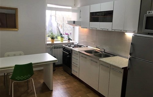 This property is situated on the lower ground floor in 3-storey building and has approx. 50 sq m of living space. It holds entry hall, 1 double bedroom, living room, kitchen with dining area and terrace of approx. 30 sq m.. The property is fully furnished and equipped with gas central heating, washing machine, dishwasher. Parking is free on the street!