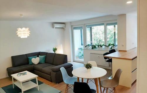 Completely renovated 1 bedroom apartment on the 1st floor of a residential building in Vrbani. It consists of an entrance hall, living room with kitchen and dining room, bedroom, bathroom with toilet, pantry and loggia. The property is modernly furnished and very well equipped; refrigerator, dishwasher, washing machine, hob, oven, extractor hood, TV, air conditioning. The building is surrounded by greenery with free public parking available. Close to schools, kindergartens and supermarkets. Lake Jarun is a 10-minute walk away. The apartment is located 5 minutes from the tram and bus station.