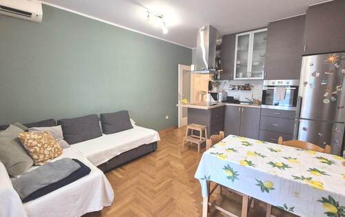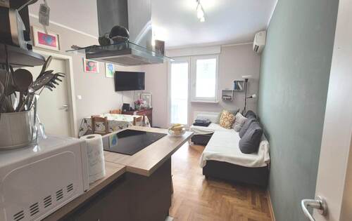 The apartment consists of an entrance, living room with kitchen, bedroom, bathroom and closed loggia. It is fully equipped apartment with AC, dishwasher, washing machine and dryer. The apartment is oriented to the East. It is located in new building near Donje Svetice, 5 minutes walk to Vukovarska street, 20 minutes to the Faculty of Veterinary Medicine.