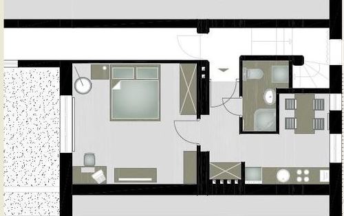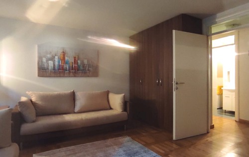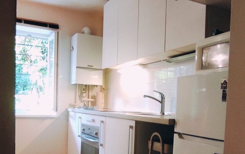 This property is placed on the lower ground floor, in a terrace house, with two other apartments. This apartment has approx. 45 sq m of living space. It holds entry hallway, one room (living-room- bedroom), separate kitchen with dining area and bathroom. The property is equipped with central gas heating, quality kitchen, washing machine. This apartment has access to a terrace and garden. Parking is available on the street, free of charge.