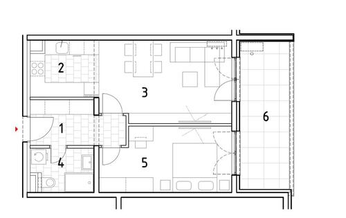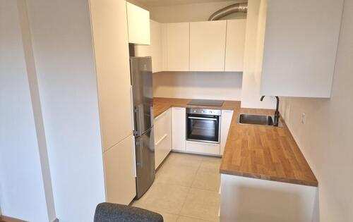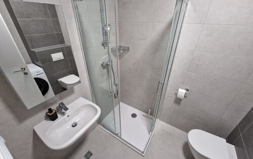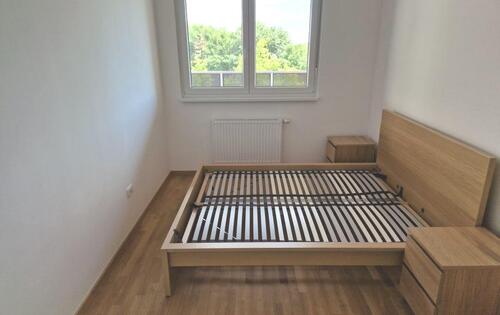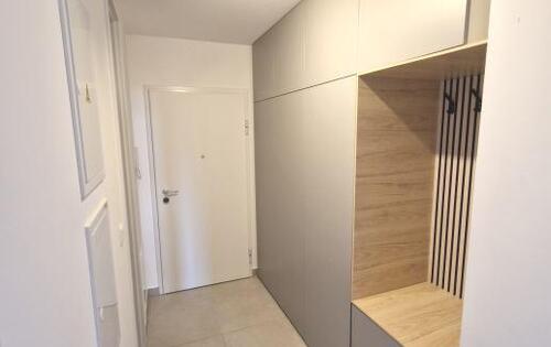 This 1-bedroom apartment of 58 sq m consists of a hallway, living room with kitchen and loggia, one bedroom and bathroom. It is placed on the 3rd floor in a new building with two elevators, east orientation. The property is equipped with AC, kitchen appliances (induction hob, oven, hood, dishwasher and refrigerator) and a washing machine. Heating is central via a district heating plant. Separate meters for heating, electricity and water. The garage parking space of 14 sq m is located on level -2. The apartment is located close to Borongaj campus, bus line to Kvaternik square is in front of the building, tram stop is 5 minutes away on Grada Gospica Street.
