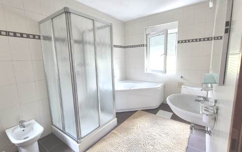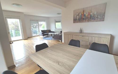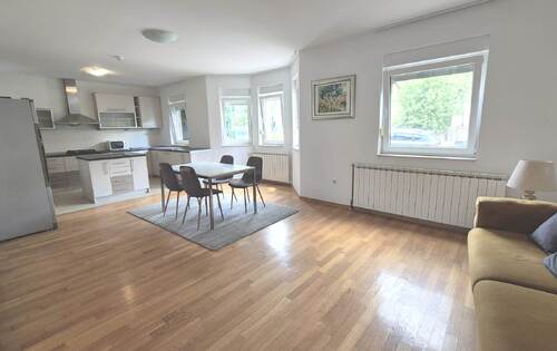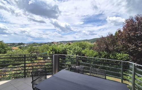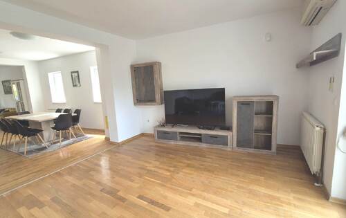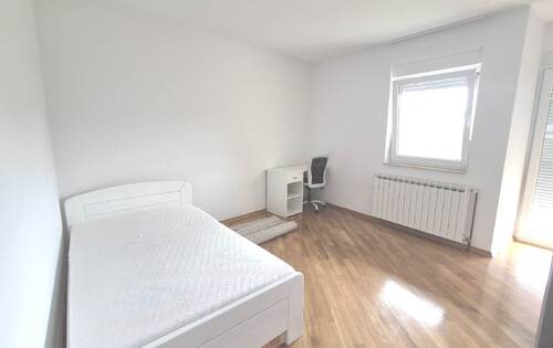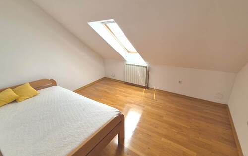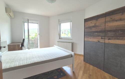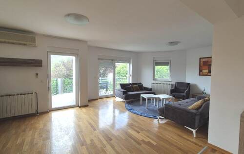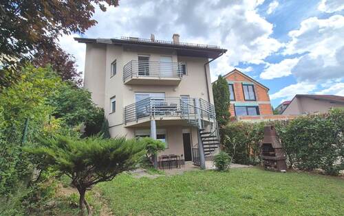 This 4-storey property is placed in north part of Zagreb and has approx 450 sq m of living space and approx 150 sq m of garden. Lower ground floor has dopuble garage, laundry room, toilet, lounge with exit to the terrace. Ground floor has entry hall with staircase, open plan fully equipped kitchen with dinig and living room of approx 100 sq m, bathroom, exit to the terrace with stairs that leads into a garden. First floor consists of 2 double bedrooms, 1 single bedroom, bathroom, and master bedroom with en-suit bathroom and study room. Top floor has 2 bedrooms, lounge and bathroom. The property is equipped with central gas heating, air-condition and alarm. One parking is reserved in secured yard.