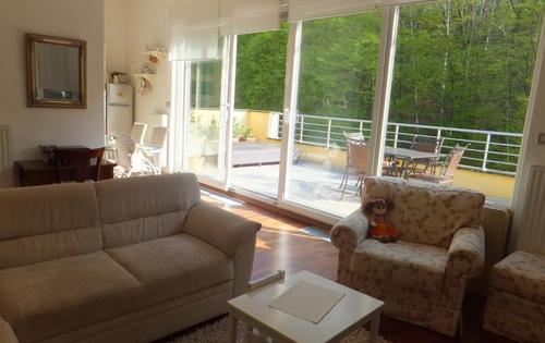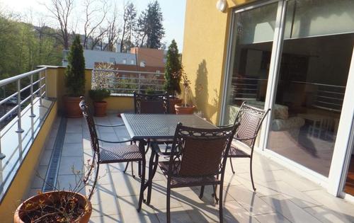 This great apartment is placed on 3rd floor in 3-storey building with 3 apartments in total and has approx 95 sq m of living space plus large terrace and good size balcony. It is fully furnished and equipped property, located next to wood in very peaceful neighbourhood but still very close to centre. It is located approx 500 m from tramline stop near Republike Austrije street. The property consists of 2 double bedrooms with access into the balcony, open plan kitchen with large terrace faced on a wood side of the street, one bathroom and guest toilet. In the 1st floor of villa is placed good equipped gym room with bathroom that can use all tenants in the building. The property is equipped with central gas heating, dishwasher, washing machine, and air-condition. One parking space is reserved in the front yard.