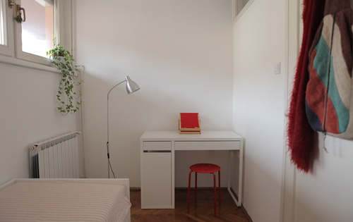 The property is situated on the 1st floor and holds approx. 86 sq m of living space. It holds entry hall, large living room, one large bedroom, one smaller bedroom, kitchen, bathroom with toilet, large balcony. Parking is available in the back yard. The apartment is located close to the public transport, main bus station, Kvaternikov square.