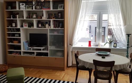 Apartment of 70 sq m, located on the first floor of the building, is situated 5 minutes by public transport from the city centre. It consists of a living room, one double bedroom, one single bedroom, kitchen, bathroom, separate toilet, balcony. The apartment is fully furnished, equipped with washing machine, dryer, dishwasher, TV, fridge, central heating. The apartment is very well connected to the city's transport with the rest of the city.