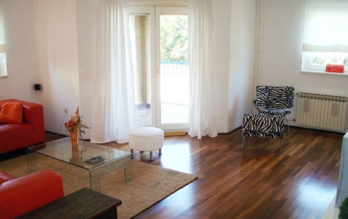 This apartment is placed on 1st floor in 4-storey building and has 88 sq m of living space. It has 2 double bedrooms, kitchen with dining room, lounge with balcony, bathroom with shower and guest toilet. The property is fully furnished and equipped and has air-condition, internet, satellite TV. Kitchen is also fully equipped. One garage space is reserved.