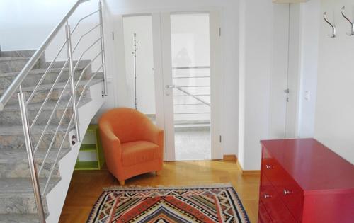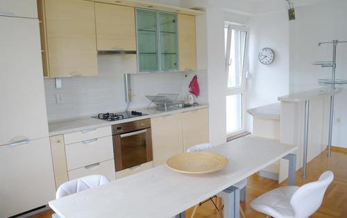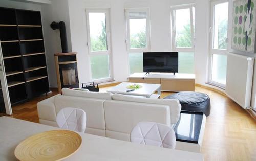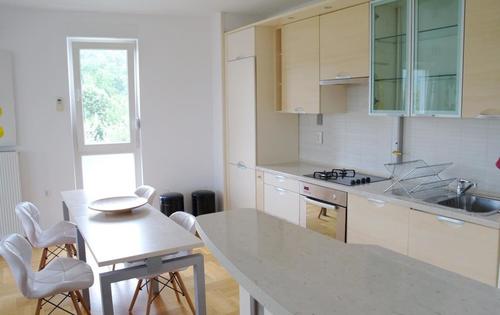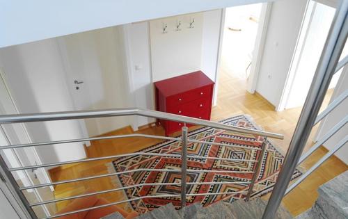 This bright and spacious duplex apartment is placed in north part of Zagreb, and has approx 136 sq m of living space and approx 50 sq m of terrace with great view on the hills. The property is placed on first and second (top) floor. On first level it consists of a guest/study room with cupboards, children's bedroom, open plane kitchen with living room, bathroom and laundry room. On top floor is placed master bedroom with en-suit bathroom and large terrace. The property is equipped with central gas heating, dishwasher, washing machine, dryer, air-condition and fiber-optic Internet. The apartment has two parking paces in front of the building. It is located only 5 minutes away from British International school.