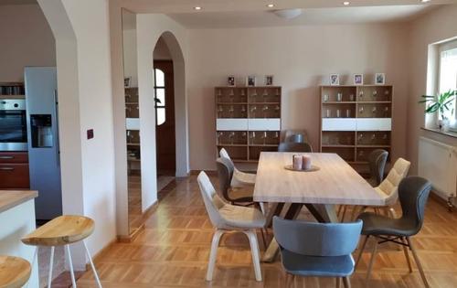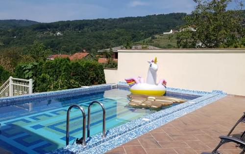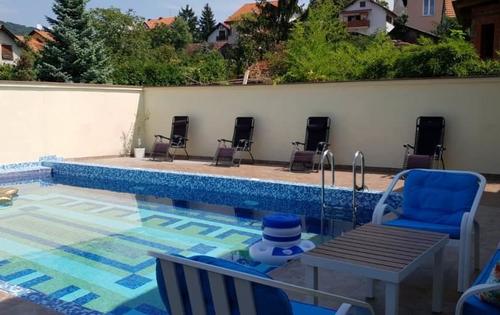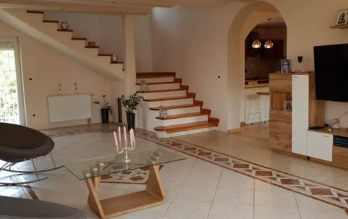 This property is placed in north part of Zagreb and has three level of approx 300 sq m of living space. Ground floor comprises large living room of approx 50 sq m, dining room, kitchen and bathroom. Top floor holds 4 bedrooms and one bathroom. One of bedrooms has approx 30 sq m and gallery of 20 sq m. Basement comprises double garage, boiler room and storage.
